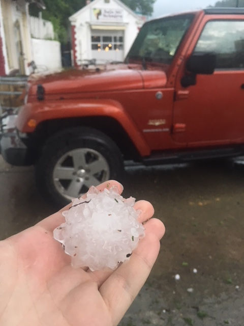 I write for a while and then head to the next town over as this coffee shop closes. Parking spots are slim, so I pull in to a wine shop, hopeful that if I do a quick tasting, I can leave my car. The woman pours me a glass of sweet, sweet chardonnay as the heavens open, but sadly it is not a rainstorm as expected, its hail. She and I run to the window and watch as tennis ball sized ice blocks fall from the sky and pound into our cars. We are in the middle of what I can only imagine is the only tornado in South Dakota history, “I’ve lived here my whole life and never seen anything like this,” she tells me, her fear growing. Growing up in Texas, I am familiar with tornado procedures and find us a spot under the counter should this storm take a turn. Memories of my Oklahoman mother sitting on the front porch and watching the tornadoes roll are evoked, comforting the scared South Dakotan. She pours some more wine, and we wait. The wine is trash, but it is helping me cope with watching my car be wrecked in real time. After the clouds roll away, we assess the damage. Large, menacing, cracks cover the front windshield, and the hood is now cratered like the surface of the moon. Thankfully I can still see out the front to drive back to the ranch, where the other visitors were not so lucky.